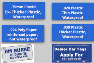 Auto Dealers Car Tags dealer tags, drive-out tags,