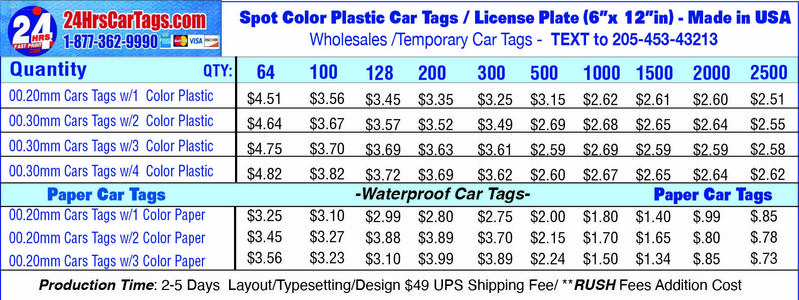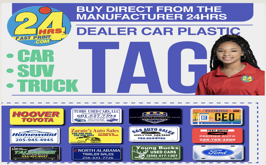 24hrs fast Print Tags is your one-stop shop for Dealer Tags, Custom Tags, & More!!!